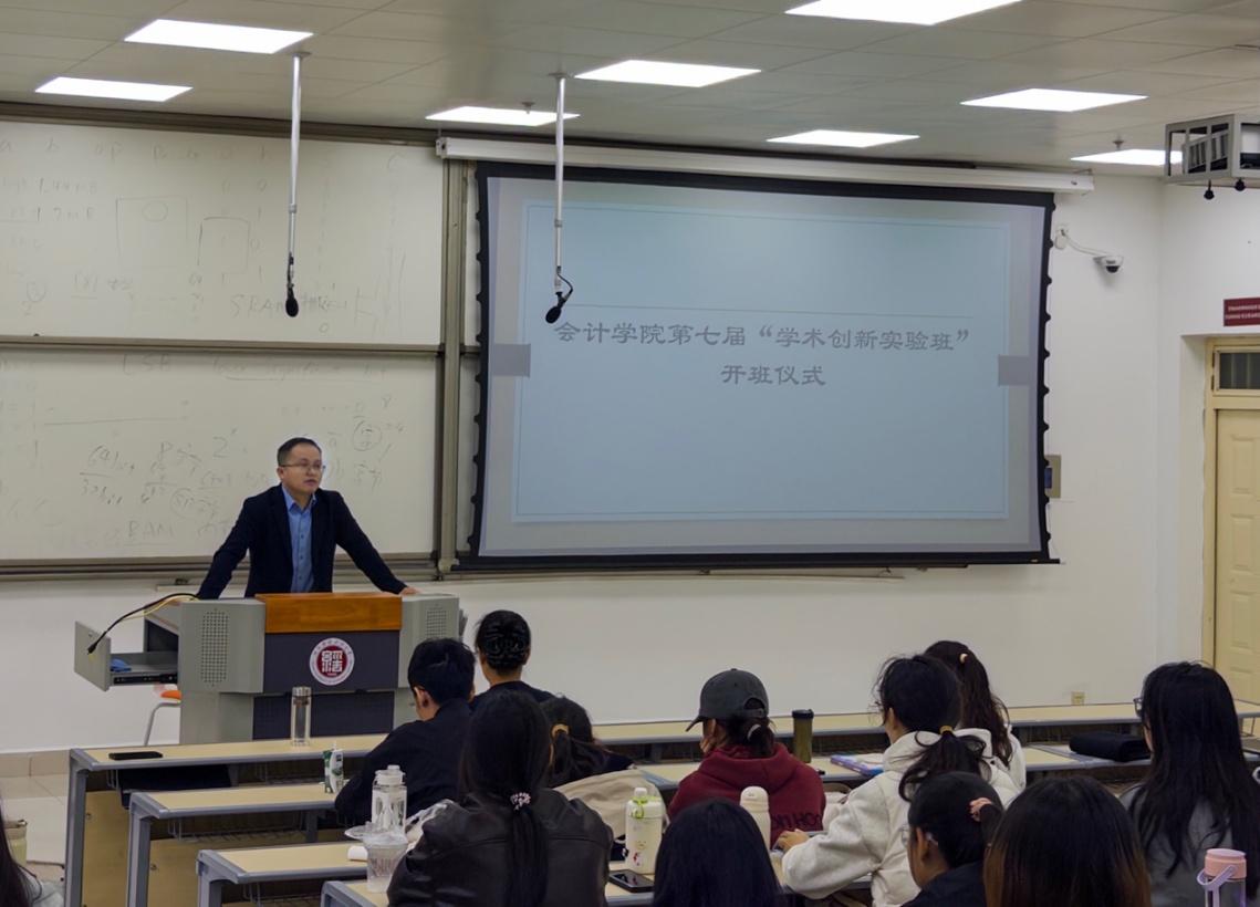 许卫华副部长结合学校发展定位,对同学们寄予殷切期望,鼓励大家不断提升科研创新素养与研究能力。谢香兵院长阐述了实验班的创办初衷与课程体系,强调学术研究应坚持“问题导向+规范引领”,注重拓展跨学科视野与能力。张焰朝老师在发言中希望同学们严守班级纪律,珍惜宝贵的学习机会。仪式结束后,谢香兵院长为第七届“学术创新实验班”讲授首堂课程。
