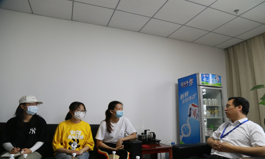 第三站,实践团成员来到河南省郑州市花花牛乳业集团有限公司拜访了集团财务总经理——99级校友滕辉。在此次走访中,滕辉向队员们讲述了自己的工作经历,并向队员们传授自己的工作经验:只有亲身体验并理解工作内容,才能真正做好财务工作。滕辉提到,过去的十几年间,收银、出纳、对账,几乎所有涉及财务的职务他都有所涉猎,而正是这些工作的积淀帮助他在财务工作中如鱼得水。他用亲身经历告诉队员们:不积跬步无以至千里,人生没有白走的路,或好或坏,自有意义。