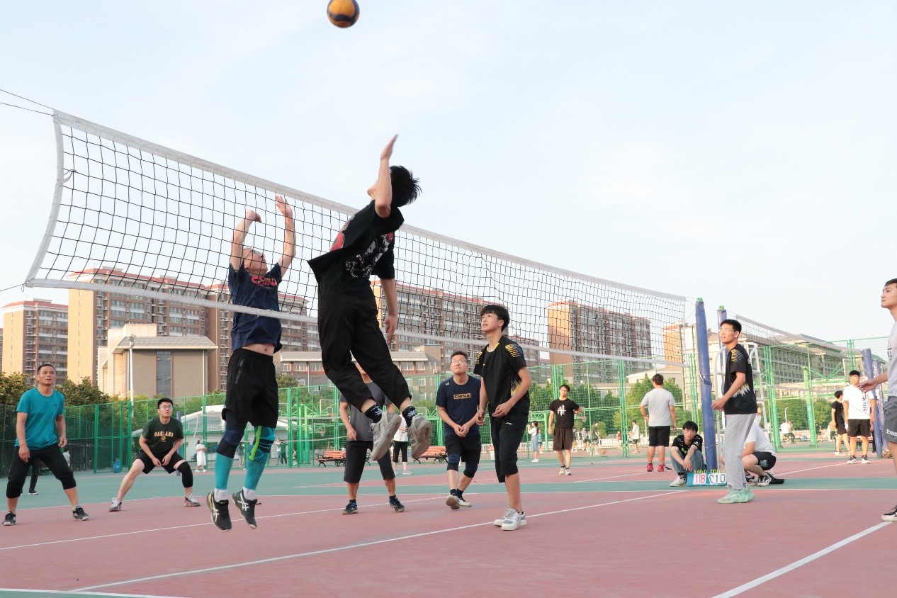 为帮助2022届毕业生重温大学美好时光,在挥洒汗水中勇毅前行,william威廉中文工会于5月26日下午在郑东校区西体育场组织举办2022届毕业季师生排球赛,我院教工代表与毕业生代表分别组队,进行了三场激烈比拼。