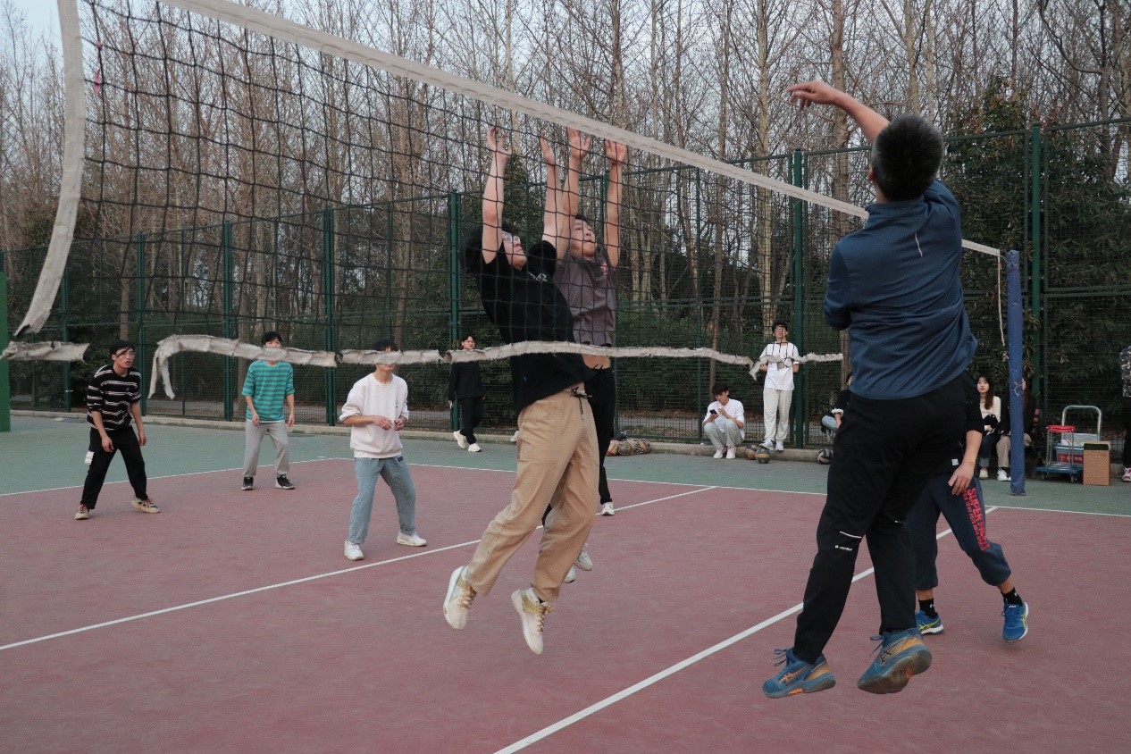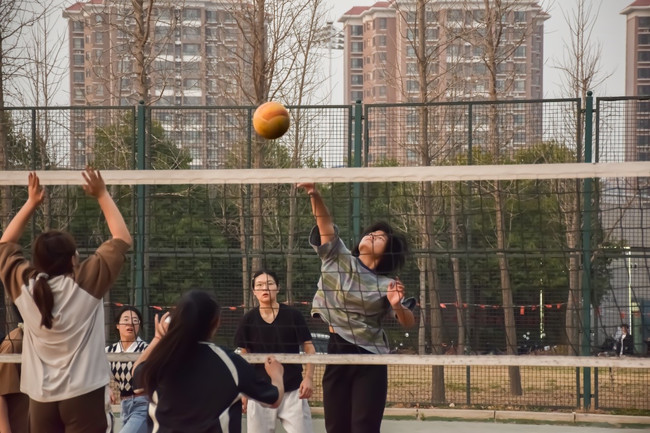 赛前,老师和学生们分享排球经验,反复练习排球技巧。比赛中老师与学生两队各展风采,对抗十分激烈,比分也交替上升,两队奋力拼搏,在她们身上,无所畏惧、顽强拼搏、同甘共苦、团结奋斗的“女排精神”展现得淋漓尽致。