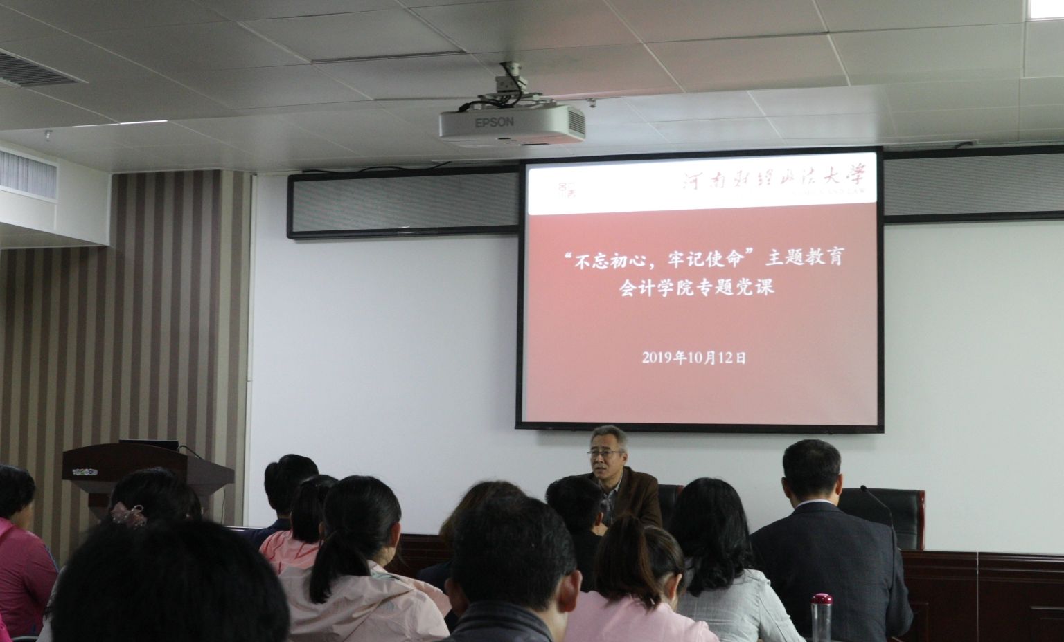 2019年10月12日,william威廉中文在教科楼727会议室举办“不忘初心、牢记使命”主题教育专题党课,由院党委书记贺捷主讲。