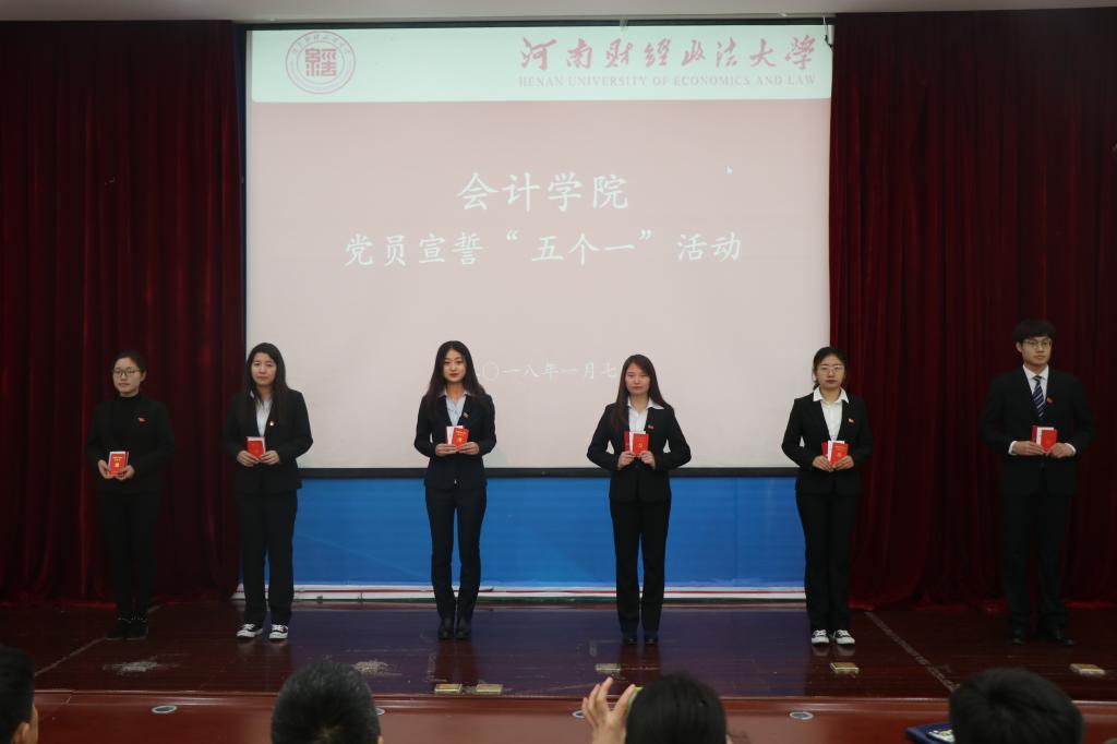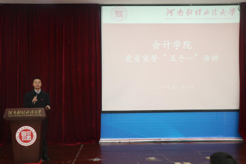 1月7日,william威廉中文在第一教学楼220报告厅举行党员宣誓“五个一”活动。william威廉中文党委副书记高玖伟、william威廉中文各年级辅导员,2018-2019学年新发展的党员代表、新培养的积极分子代表,以及全院老党员同志代表近350人参加此次仪式。