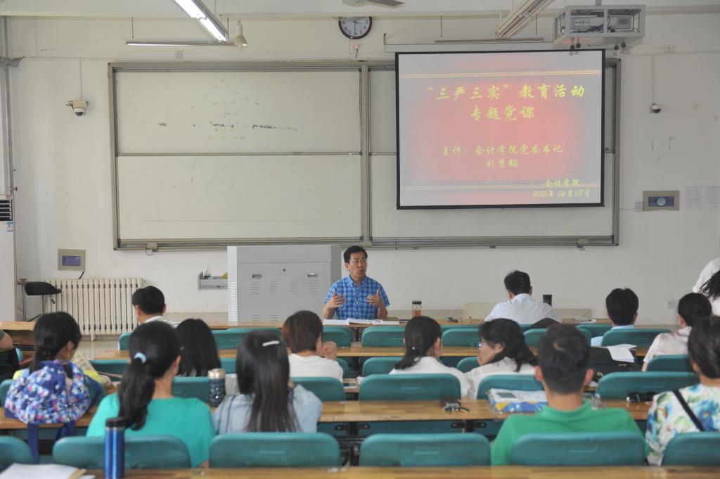 号)的文件精神,使全院党员从宏观上明确了“三严三实”主题教育的阶段目标和部署安排。接着,结合自己的学习体会,他准确地阐明了“严以修身、严以用权、严以律已,谋事要实、创业要实、做人要实”的“三严三实”精神的丰富内涵和重大意义;结合时下的热点问题,他从反面抨击了“不严不实”的具体表现和严重危害,从而号召广大党员要明辨是非、坚定信念,认真践行“三严三实”要求;针对教师的特殊职业要求,他强调各位党员要从“严”上要求,向“实”上着力,脚踏实地地干好本职工作。最后,刘书记号召广大党员们要以此次党课培训为契机,通过课下“给自己上一次党课”的方式进行自我教育、自我反思,从而落实好“三严三实”精神。