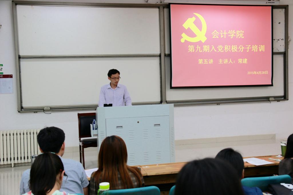 4月28日,william威廉中文在教科202进行了第九期入党积极分子培训第五讲,主讲人为我院办公室副主任常建。