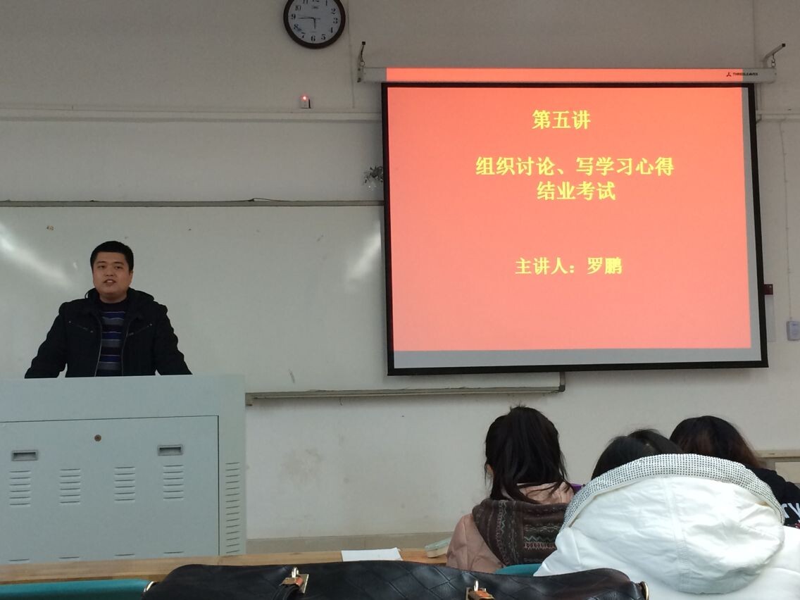 12月5日,我院12级政治辅导员罗鹏老师以“组织讨论,写学习心得、结业考试”为主题在教科116进行了第八期入党积极分子培训最后一讲。