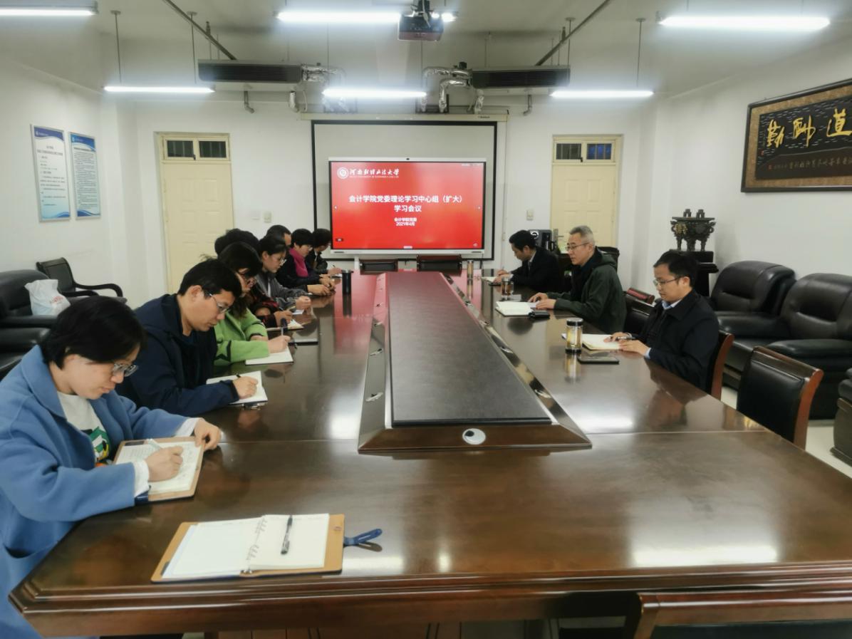 为进一步加强党委中心组理论学习,落实落细党史学习教育任务和工作举措,4月2日下午,我院在教学科研楼409会议室召开院党委理论学习中心(扩大)会,院党委书记贺捷,院党委委员及各支部书记参加会议。