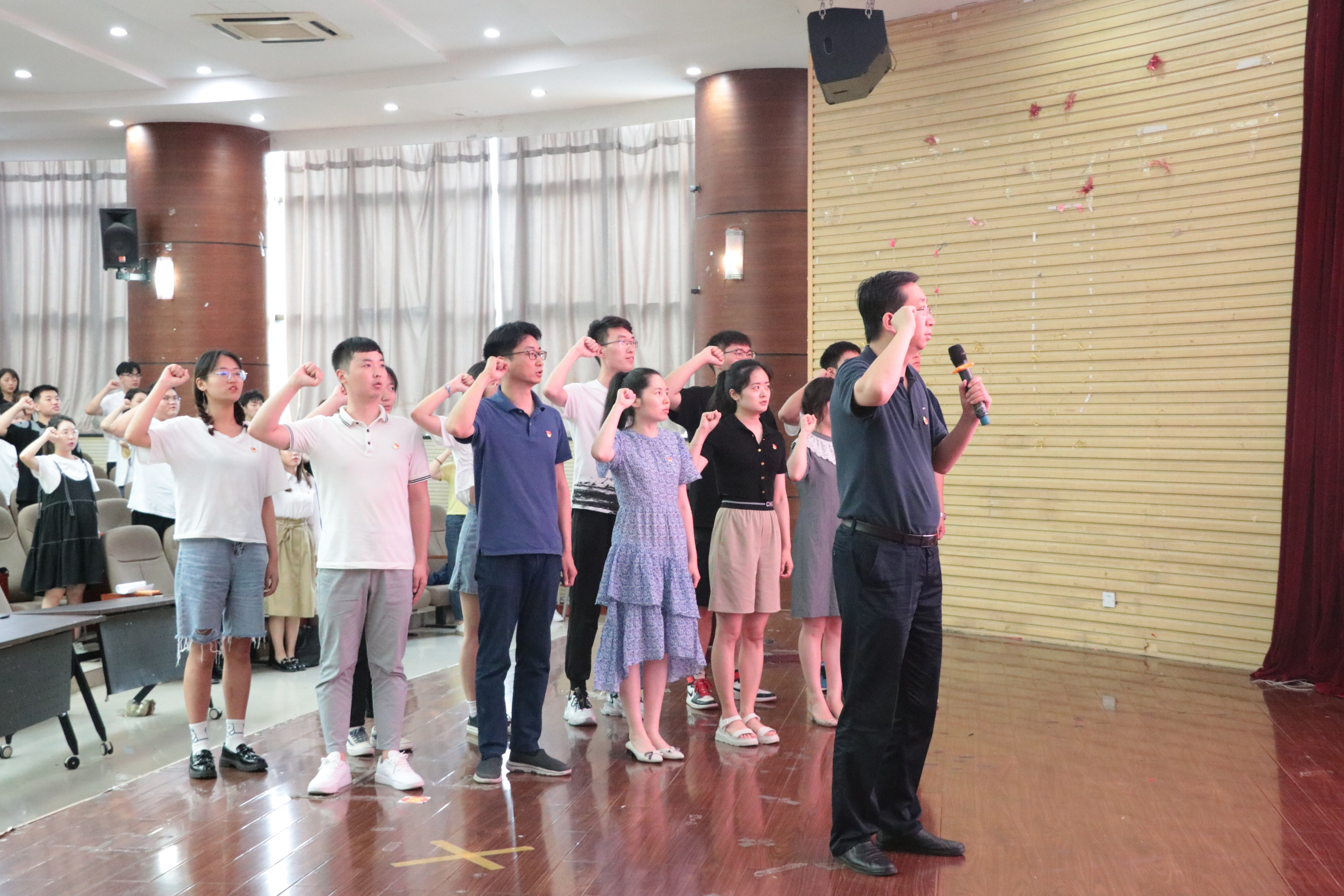 北辰青年宣讲团朗诵了《红船》,带领大家共同回顾了中国共产党成立以来带领中国人民不屈抗争、不懈奋斗的百年革命史、创业史和发展史。2019级预备党员薛子川代表新党员发言。他分享了入党的心路历程,表示将牢记入党誓言,在今后的学习和工作中,自觉以党员的标准严格要求自己,充分发挥共产党员的先锋模范作用。2017级学生党员刘威作为老党员代表发言。她强调了入党誓言对党员的重要性,表示将不忘初心,铭记对党的承诺与誓言,摆正自身位置与态度,学加强自身修养,为党的建设贡献一生。随后,刘文升作为领誓人,带领全体党员面对党旗庄严宣誓。