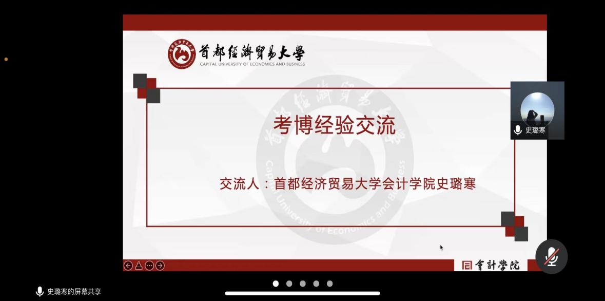 本次党日活动由支部书记白婧老师主持,并邀请首都经济贸易大学会计学博士在读的史璐寒同学和中国财政科学研究院会计学博士拟录取的刘晗同学为支部全体党员做如何继续攻读博士经验分享。