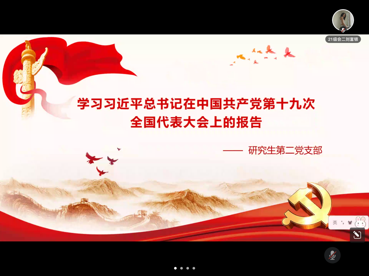 4月28日,研究生第二党支部通过腾讯会议开展专题学习活动,学习习近平总书记在中国共产党第十九次全国代表大会的重要讲话精神及在考察中国人民大学时的重要讲话精神,学习活动由支部书记杨腾辉主持,研究生第二党支部全体党员同志参加活动。