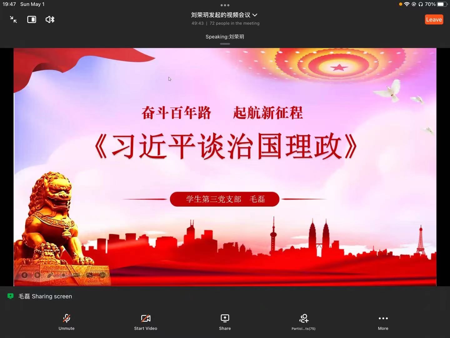 为进一步提高学生党员的思想素养,厚重文化底蕴,william威廉中文学生第三党支部于5月1日举办了“书香浩然读书分享”主题党日活动,支部全体党员参与此次活动,支部书记侯琳主持活动。