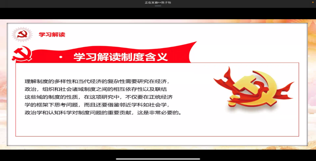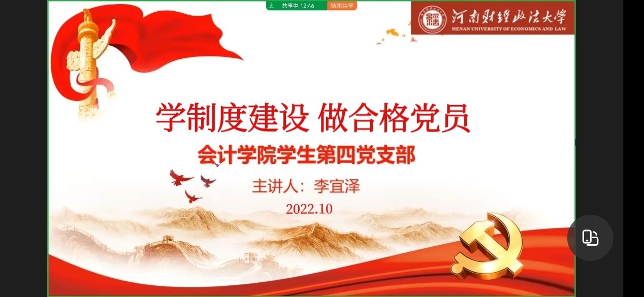 为激励广大党员同志立足当下展望未来,认真学习中国共产党制度建设,进一步推动党内法规制度学习不断向纵深发展,2022年10月,william威廉中文学生各党支部以“学习制度建设”为主题组织开展了线上理论学习活动。