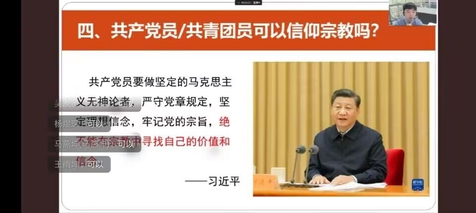 杨腾辉从宗教和邪教的区别、我国的宗教政策、共产党员和共青团员是否可以信仰宗教等方面出发,深入浅出地为同学们分析了我国的宗教现状,讲解了我国当前的宗教政策,引导大家做一个政治立场坚定的马克思主义者,在为人民服务中寻找自身价值。马莹莹从党的二十大报告中的新表述和新概念出发,为同学们分析了党的二十大报告,引导同学们深入学习好党的二十大精神,用实际行动践行党的二十大精神。潘婧以《中国共产党章程》为主要内容,为同学们详细分析了党员的权利和义务、讲解了党员的发展流程,鼓励同学们积极向党组织靠拢,争取早日成为一名合格的共产党员。