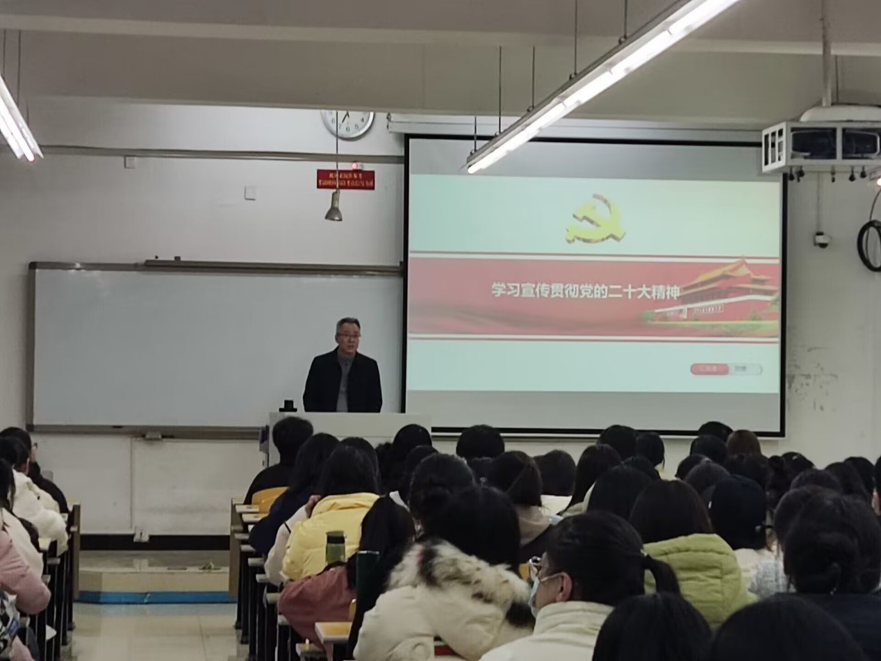 贺捷以学习贯彻党的二十大精神为主题,从六个方面深入详细地向同学们讲述了党的二十大精神的重要意义,引导同学们深入学习理解其丰富内涵,并将其融于日常学习工作,坚定不移感党恩、听党话、跟党走;田西杰以“民族复兴”“国家富强”“共同富裕”为主线,带领同学们深入学习领会习近平新时代中国特色社会主义思想,并要求同学们坚持学习习近平新时代中国特色社会主义思想,以具有原创性的新理念新思想新战略,书写新时代中国特色社会主义新的篇章;张肖飞以党的二十大开幕闭幕时间和与会人数为切入点,循序渐进地引导同学们学习党的二十大报告,强调要深入汲取党史中的营养,深刻领会党的创新理论,坚持不懈地用习近平新时代中国特色社会主义思想武装头脑;宋斌斌从党章入手,为同学们详细讲解了党员发展流程,要求同学们坚定政治立场,不仅要积极从组织上入党,更要从思想上入党,做一名合格的共产党员。