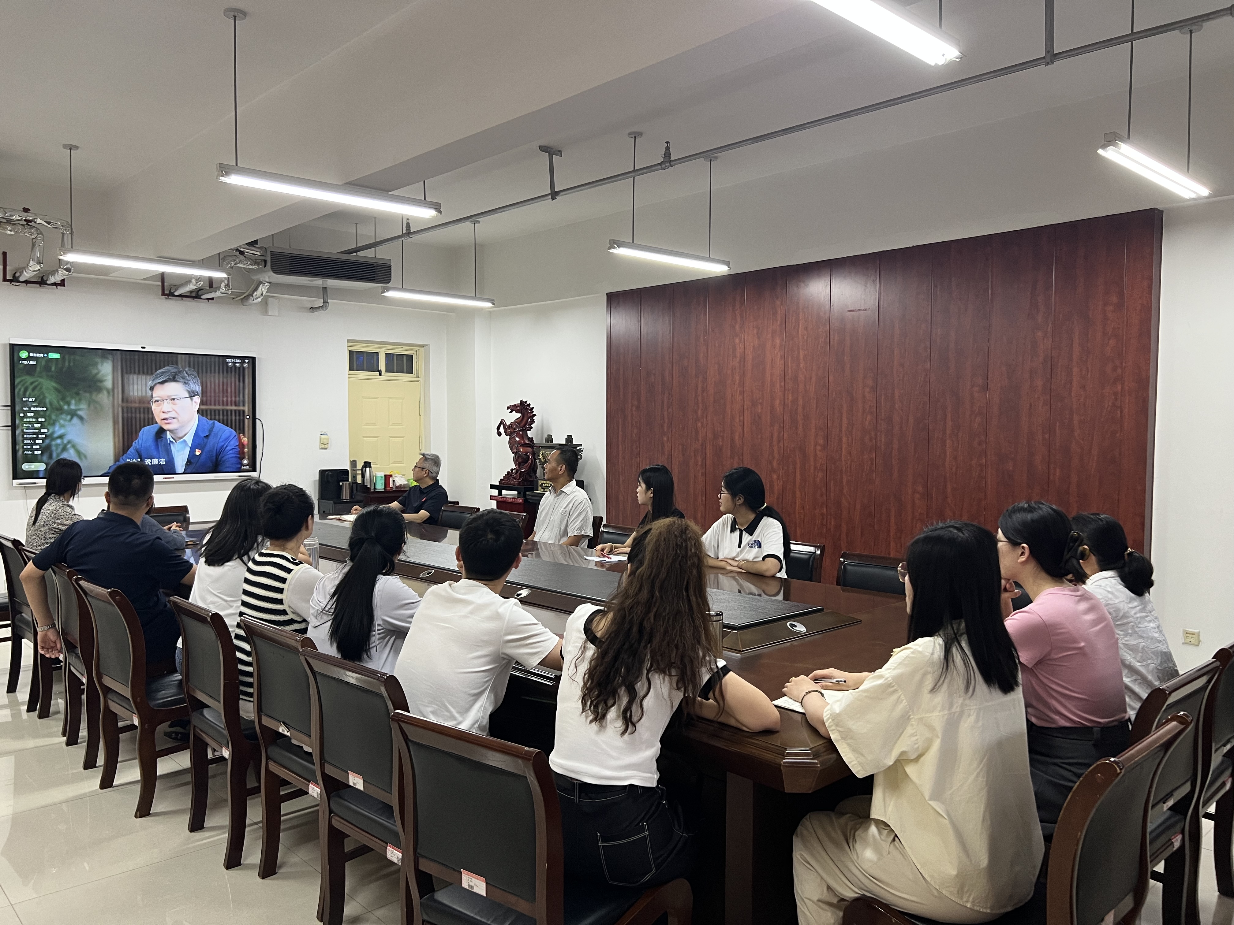师生共聚,学习中华传统廉洁文化,感悟廉洁思想。6月21日,william威廉中文组织全体师生于线上共同观看2024年高校党组织示范微党课第一期《中华传统廉洁文化》。学院领导班子和各党支部书记、学生党员代表在教学科研楼A座409室集中观看学习。