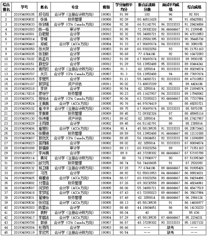 根据WilliamHill中文推荐优秀应届本科毕业生免试攻读硕士学位研究生遴选工作有关要求,经个人报名、资格审核、面试、成绩核算等程序,现将推免工作相关成绩予以公示。公示期间,如对分数有异议或有其他问题,请向william威廉中文教学办公室、团委办公室进行反映。