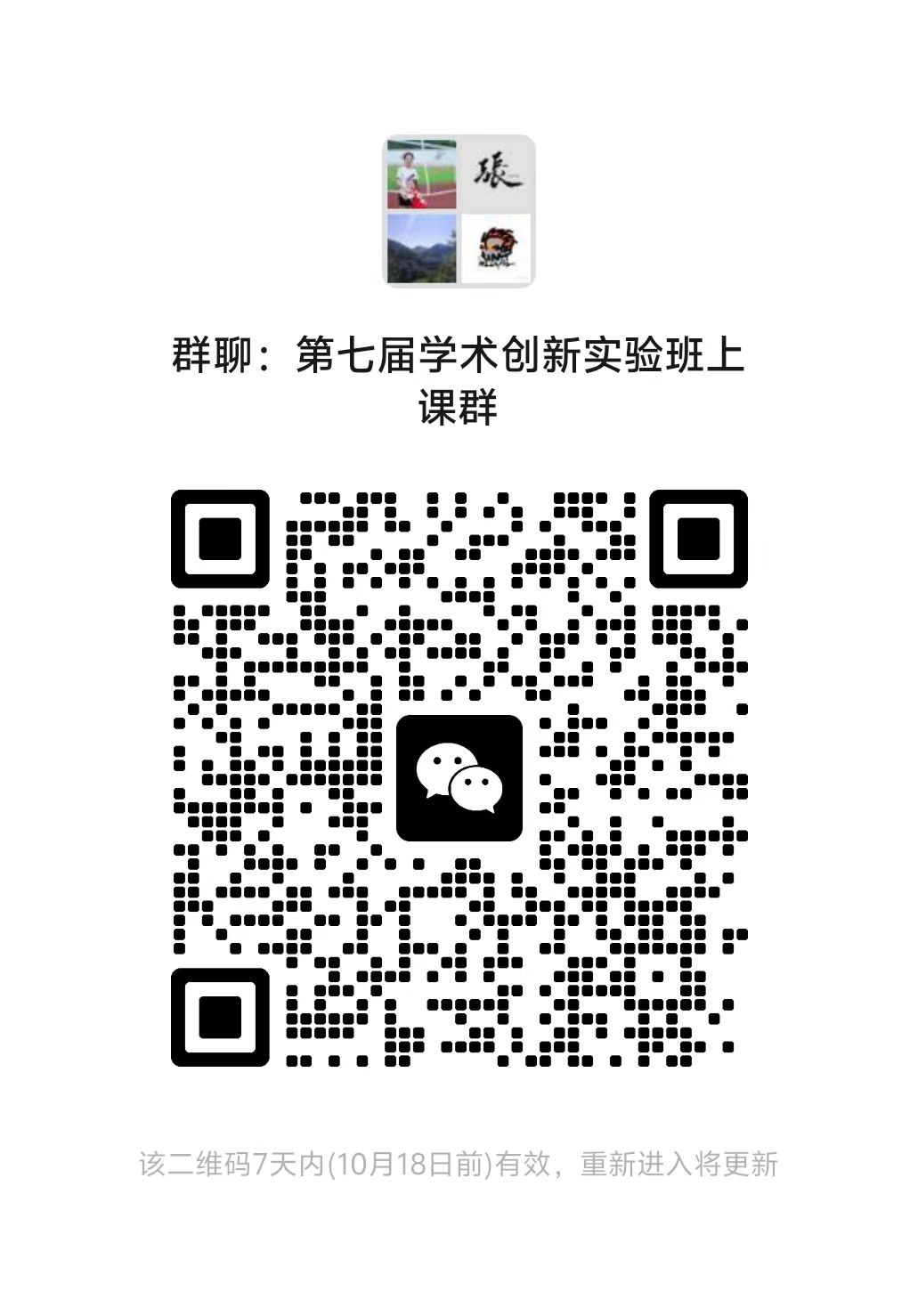 为满足更多同学的学习需求,实验班将实行开放式授课,未在录取名单内的同学也可参与旁听。请录取同学及有意旁听的同学扫描下方二维码加入授课群。