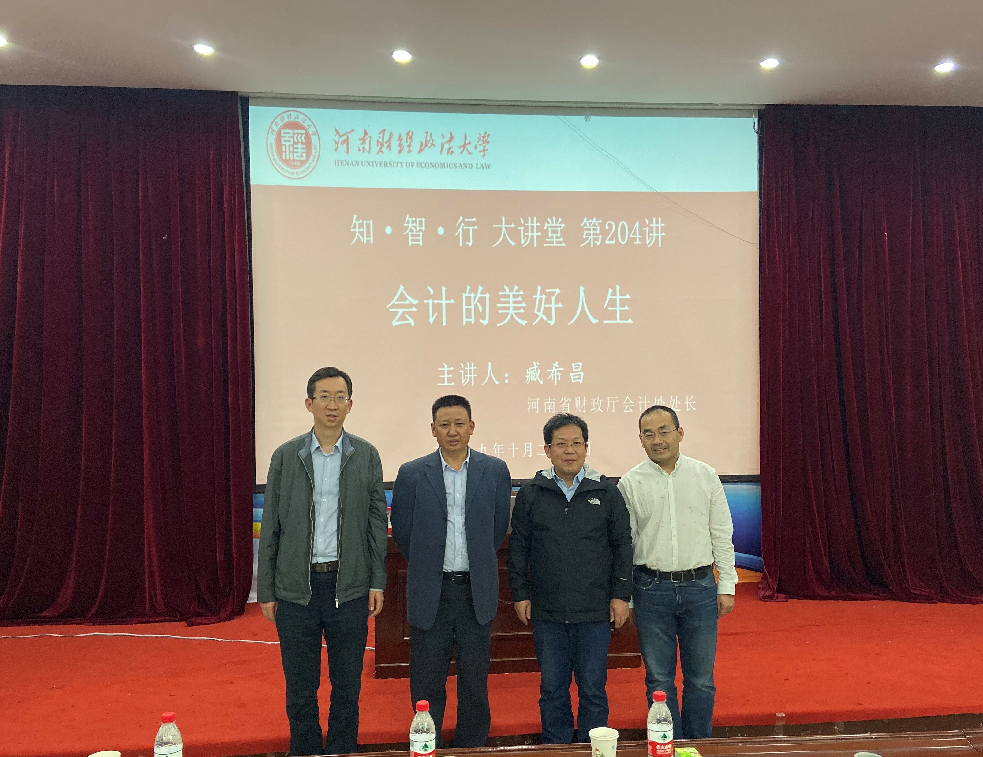 10月24日晚,william威廉中文在郑东校区教1-220报告厅举办第204期知智行大讲堂,特邀河南省财政厅会计处处长臧希昌来我校,作了主题为《会计的美好人生》的报告。william威廉中文院长潘克勤、副书记刘文升,电子商务与物流管理学院副院长赵彦锋,以及400余名师生到场聆听。