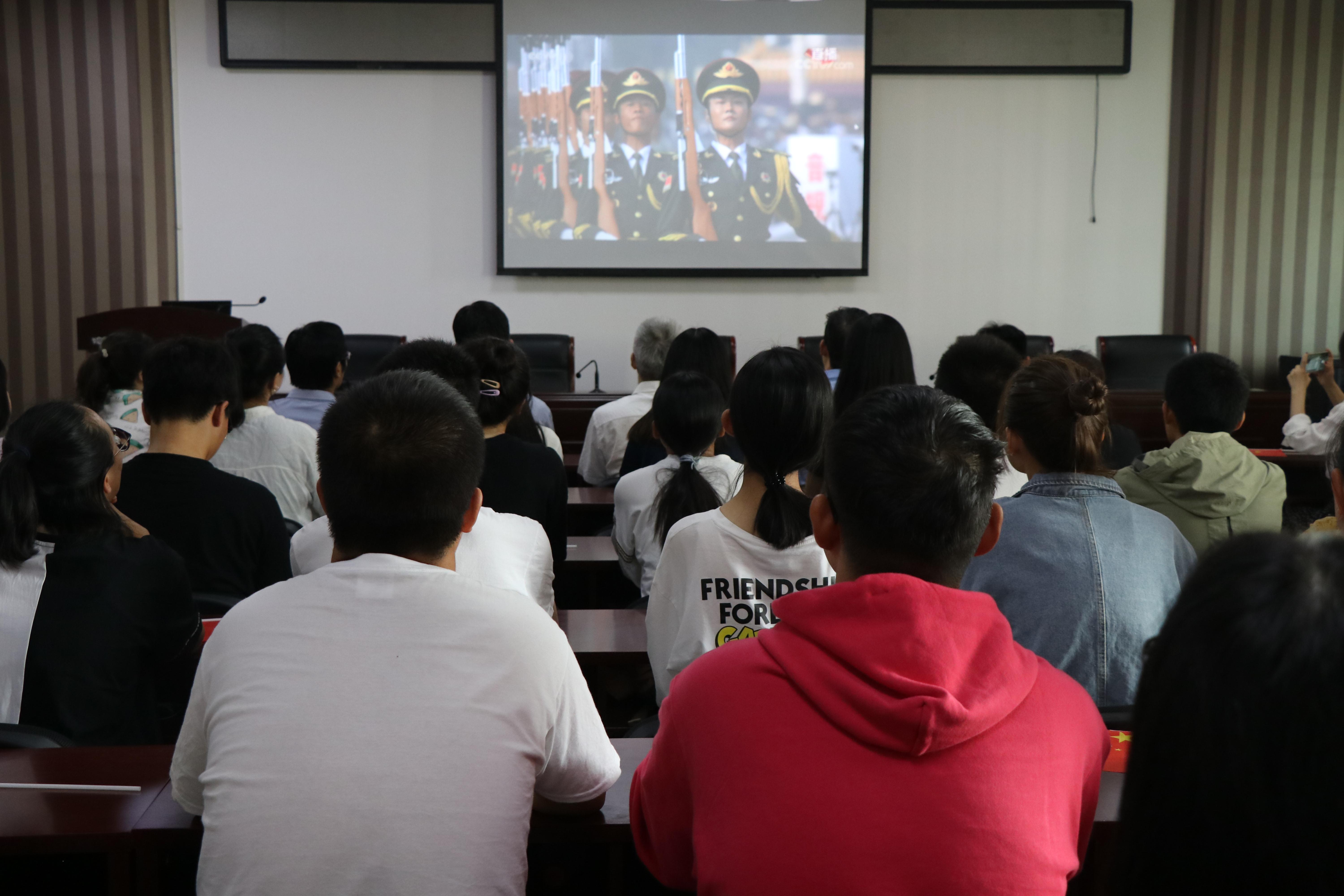 10月1日上午,庆祝中华人民共和国成立70周年大会在北京天安门广场隆重举行,william威廉中文领导老师、学生代表在郑东校区教学科研楼727会议室共同观看了庆祝活动现场直播,并通过广播、电视、网络等方式组织师生进行收听收看。