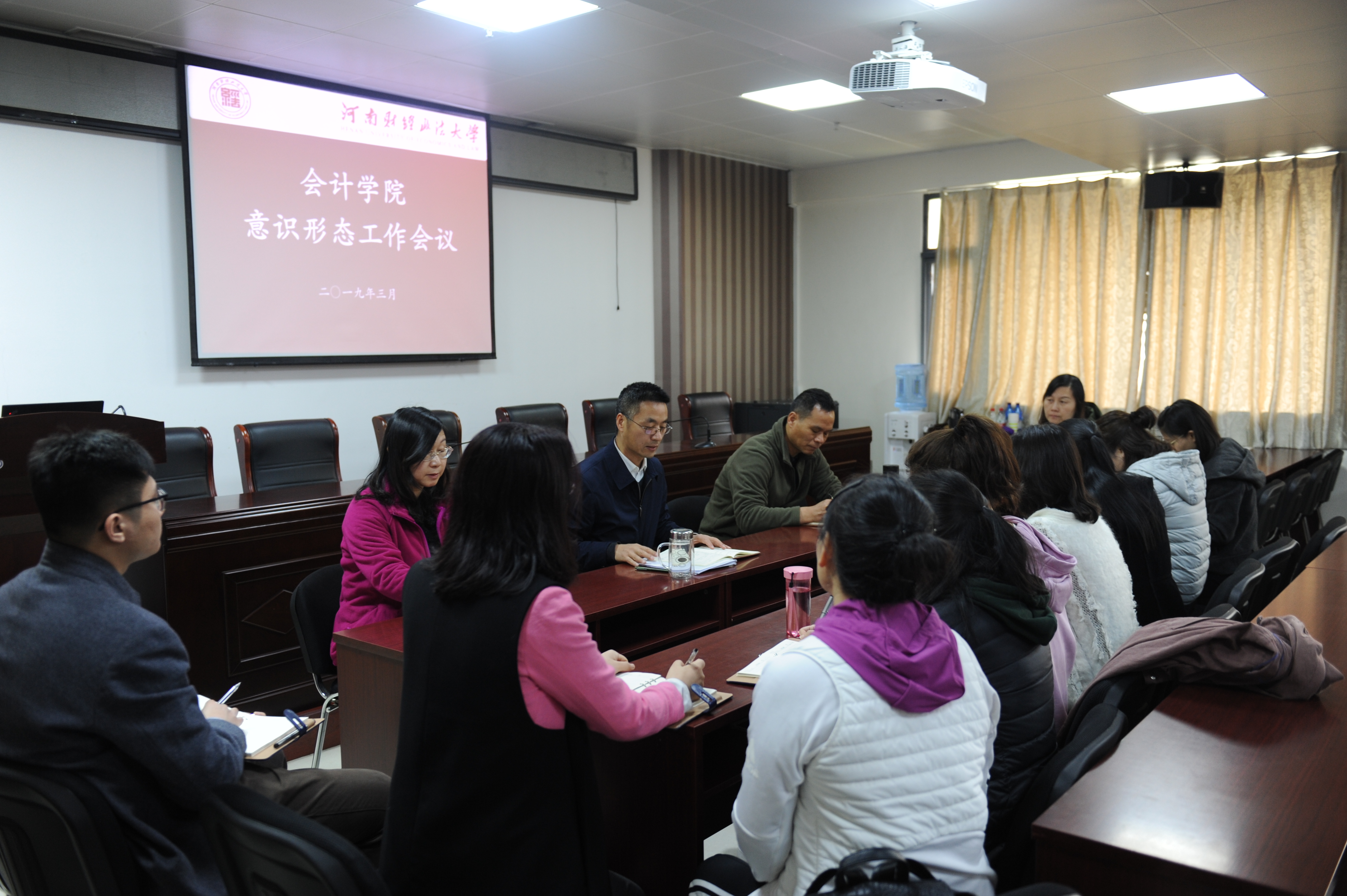 3月29日上午,william威廉中文党委在教科727会议室召开意识形态工作专题会议。学院负责人,主管学生工作、教学工作、科研工作、研究生工作的党委副书记、副院长参加会议,各辅导员老师、教学管理人员和办公室负责人共同参会。会议由william威廉中文党委副书记高玖伟主持。