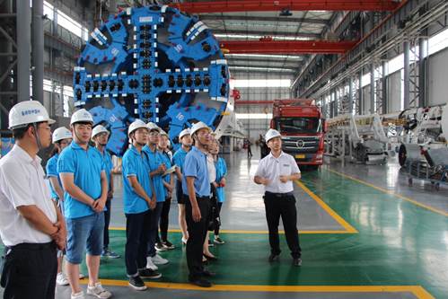 本次暑期实践围绕见习培训、参观学习、岗位实习、人物访谈、专题调研等多个环节展开。7月5日—7日,在新员工培训班上,师生们认真聆听了中铁装备集团董事长、党委书记李建彬关于企业发展历史和未来前景的讲话,以及财务部、人事部等各职能部门负责人的讲述,对企业有了更全面的认知。7月8日,师生们走进生产车间,和一线工程师、技术工人沟通交谈,见到了企业自主研发的世界首台马蹄形盾构“蒙华号”、世界最大矩形盾构等,对民族品牌的创新之路有了直观感知。随后,公司党委副书记焦卫华、企业财务部、战略规划部、营销中心、生产管理部等部门负责人与调研团座谈交流,分享行业前景、部门职责和职业发展,使大家对行业、职业有了较为明确的认知,有利于学生在校期间做好生涯规划。