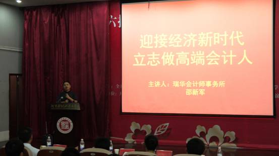 9月22日晚,william威廉中文特邀中国注册会计师协会首批资深会员、河南省注册会计师协会副会长、河南国际商会副会长、瑞华会计师事务所合伙人邵新军先生,为同学们带了一场名为“迎接经济新时代,励志做高端会计人”的主题讲座。校团委书记王永伟、学院院长潘克勤与500名同学共同聆听了此次讲座。