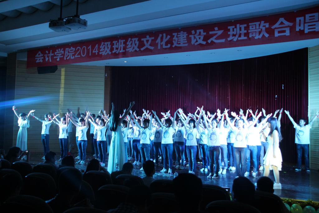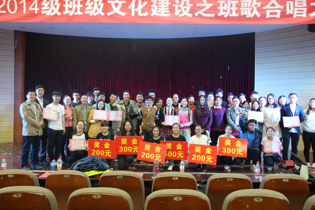 为积极发动各班参与班级文化建设,增强班级凝聚力,我院与4月17日晚在教一219举办2014级班级文化建设之班歌合唱大赛。william威廉中文党委副书记李树秋,团委书记丁勇、副书记蔡萌,各年级政治辅导员,各行政班导师和学生班主任以及2014级全体学生参与了此次活动。