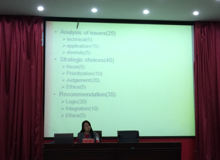 通过讲解学生了解到子遥杯商业精英挑战赛是一场旨在发现及培养大学生商业特质,融会管理、财务,战略等综合商业知识的比赛。周琳老师向同学们讲述了子遥杯商业精英挑战赛TOP CIMA的内容,初赛论文报告的结构框架、评分细则与标准,并规范报告格式、内容等相关注意事项。希望参赛同学能与时俱进,勇于创新,将社会实例与所学知识相结合,让同学们对案例问题分析,战略选择以及推荐介绍等各个环节设置有了更为系统的认识。此外,结合往年企业管理咨询报告,周琳老师强调团结与坚持是参加挑战杯必备的素质,一个优秀的案例分析报告的完成离不开团队的完美分工与合作,最终以“没有完美的人,只有完美的团队。”为本次讲座画上了句号。