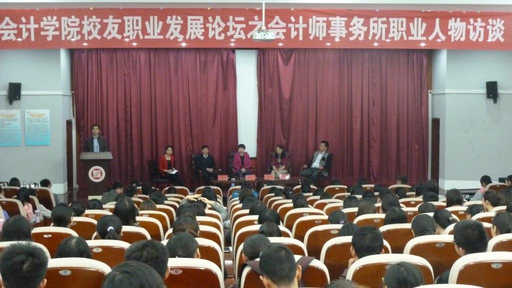 10月30日晚7点,william威廉中文校友职业发展论坛之会计事务所职业人物访谈在教一220召开。邀请我院往届优秀校友中勤万信会计事务所有限公司河南分公司总经理张宏敏、瑞华会计事务所合伙人范文红、大华会计事务所上海分析项目经理李丙仁等人。我校就业处崔炜处长以“时间都去哪儿了”为主线拉开此次访谈的序幕,各位校友依次结合自身实际情况就如何协调学习与工作的关系与大学生真正培养的应是一种自我学习的能力引出了培养良好学习能力的重要性;注册会计师资格证、CPA证书与专业能力的对比、会计事务所招聘人员的选拔条件与主考官考查范围及我们大学生现在应该从哪方面储备自身专业素养等学生比较关心的问题进行了深入的解答,并勉励同学们能在未来的日子里好好学习储备知识,脚踏实地,厚积薄发,真正做到“敢想,敢做,敢得到”。本次访谈有助于帮助学生更好认识到本专业的发展前景,树立正确价值导向,从而为自身未来发展奠定了基础。