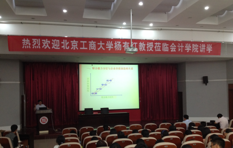杨教授指出:财会的职能由低到高可以分成核算、分析、管控、战略四个层次,而财会人员能够发挥什么作用取决于自身的能力,能力来自于知识积累和运用,所以,大家在学习过程中不仅仅要学习专业知识,还要学习很多其他学科知识,不仅要学习书本知识,还需要将书本专业知识与资本市场和上市公司典型案例进行结合、运用。讲座过程中,杨教授运用了很多精彩案例,展示了其漫长而且精心的专业案例积累历程和深厚的专业逻辑分析功力。