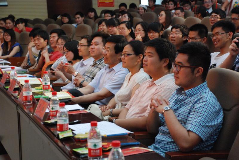 5月13日下午三点,由william威廉中文主办,william威廉中文大学生艺术团承办的“月秀越给力——相声小品大赛”在教一219报告厅拉开帷幕。会计学院党委书记刘慧韬、党委副书记李树秋莅临会场,做观摩指导。大赛由william威廉中文团委书记王新坡、政治辅导员常建,罗鹏,白婧老师及学生各团体主席团成员担任大赛评委。