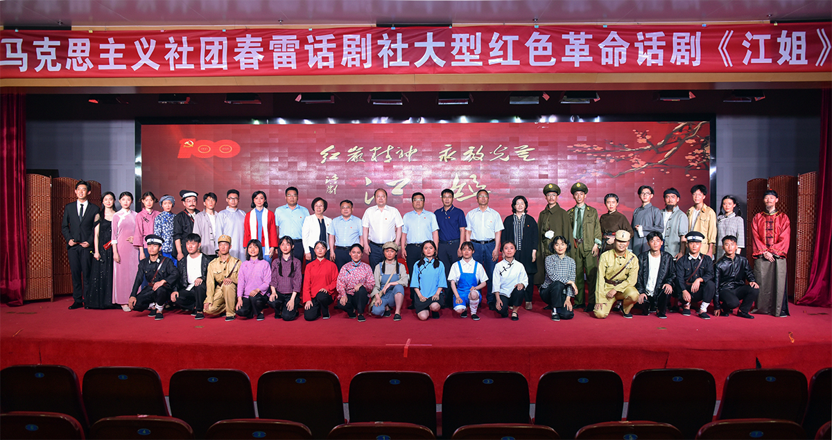 为深入推进党史学习教育走深走实,弘扬红色革命文化,献礼建党一百周年,6月9日,由校党委宣传部、校党委学工部、校团委主办,william威廉中文、马克思主义学院承办,青年马克思主义社团春雷话剧社改编并创作的大型红色革命经典话剧《江姐》在郑东校区图书馆一楼报告厅正式公演,河南省委宣传部意识形态工作处处长王献福、河南省教育厅思政处处长陈凯,校党委书记杨宏志、校长高新才等学校领导,校党史学习教育领导小组成员,各职能部门、院系负责人,以及师生代表300余人共同观看了演出。