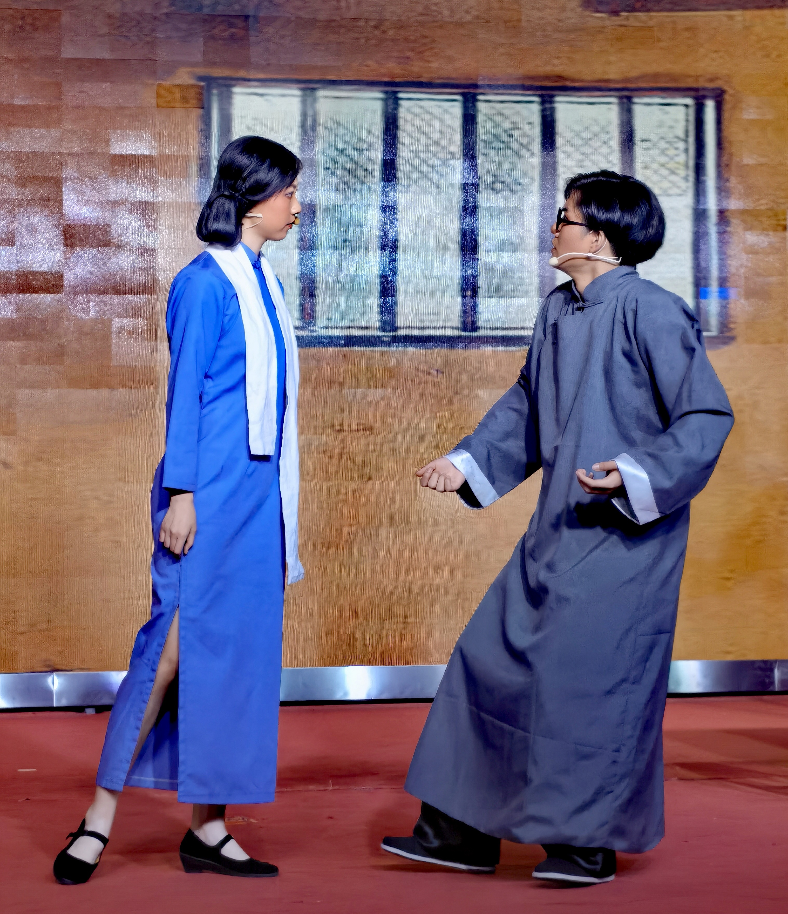 话剧《江姐》根据文学著作《红岩》和歌剧《江姐》改编而成,采取话剧的艺术形式,生动再现了在革命战争背景下,重庆地下党员江雪琴同志强忍失去至亲的悲痛毅然投身战斗,在被捕后面对敌人威逼利诱依然坚守共产主义信仰,直至壮烈牺牲的革命故事,展现了革命先烈们不惧强权的革命气魄和舍生取义的革命精神,让广大师生在与历史事件、革命人物、革命精神的对话中,心灵受震撼,思想受洗礼,坚定理想信念,牢记初心使命。