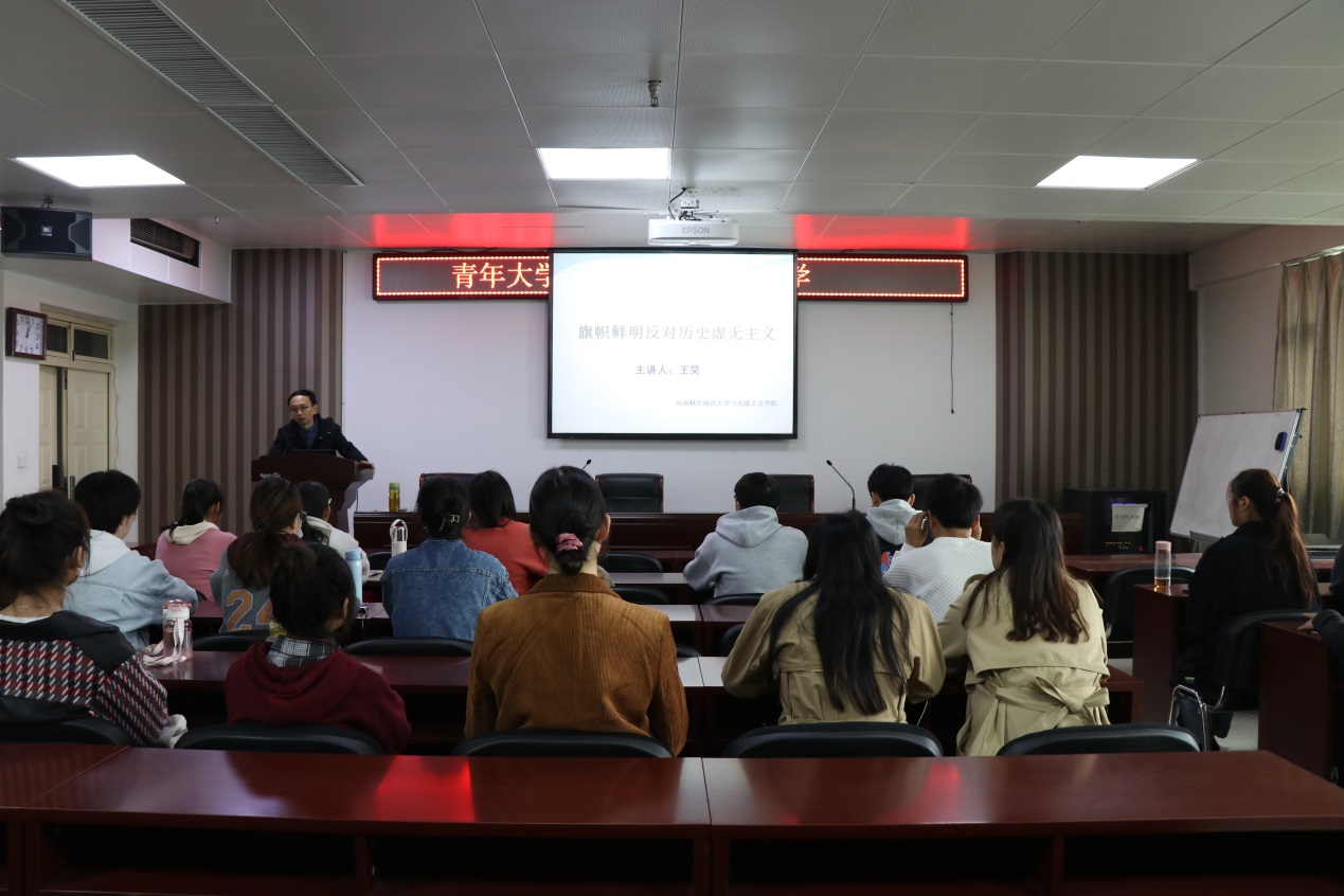 10月19号下午,william威廉中文在教学科研楼727会议室开展以“旗帜鲜明反对历史虚无主义”为主题的党史宣讲活动,william威廉中文党史宣传团成员王昊担任主讲嘉宾,我院积极分子代表40余人共同参与此次宣讲活动。