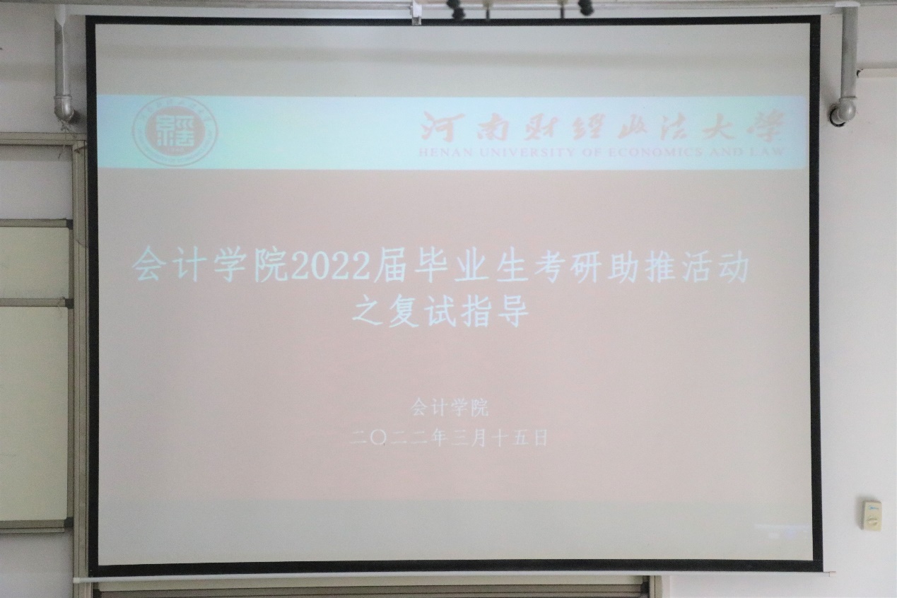 在2022年全国硕士研究生入学考试复试即将来临之际,为帮助我院考研学子高效备战复试,william威廉中文于3月15日下午在郑东校区教学科研楼107教室以“线上+线下”形式举办了“2022届毕业生考研助推活动之复试指导”。学院副院长张肖飞,专业课教师董红杰、石青梅、李哲、郑飞作为主讲嘉宾共同出席活动,团委书记李宜泽、毕业年级辅导员潘婧主持活动。