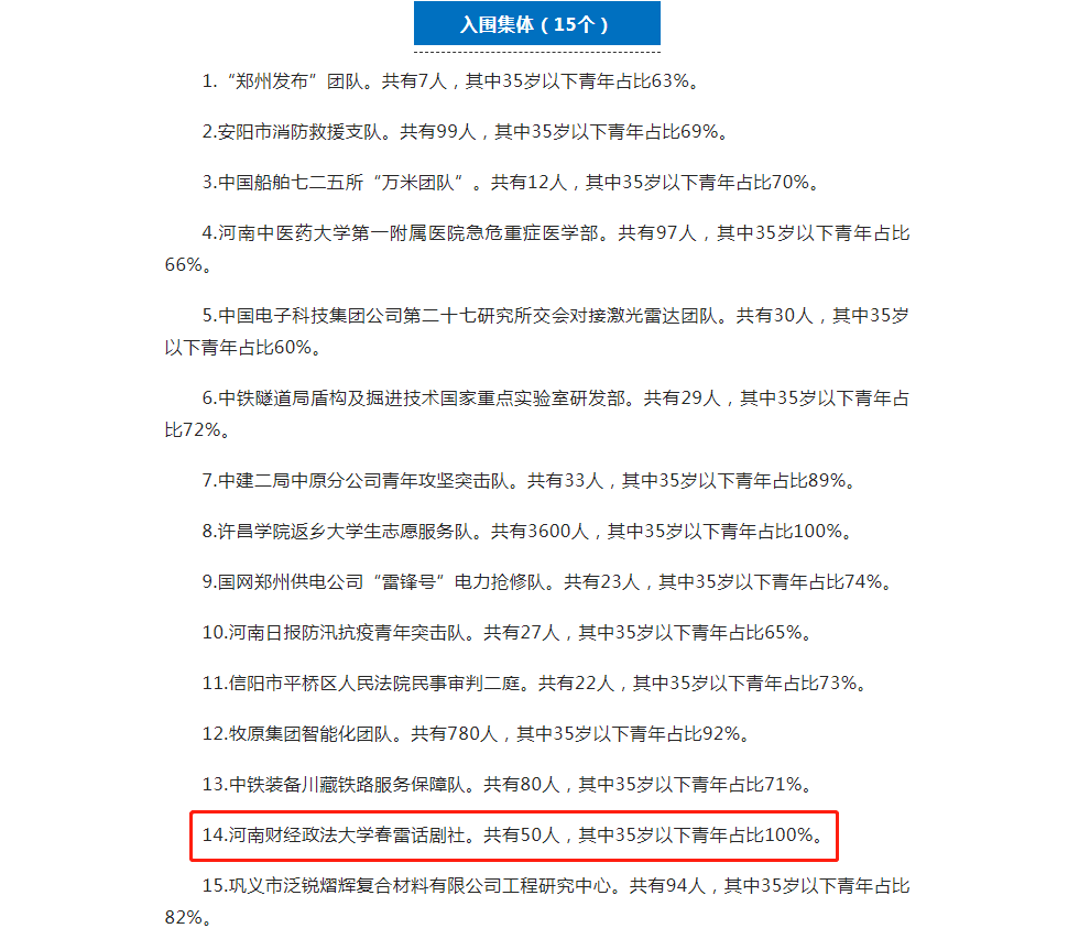 为展示新时代河南青年的精神品格和价值追求,团结引领广大团员青年锚定“两个确保”、助力“十大战略”,积极投身现代化河南建设,以优异成绩喜迎党的二十大胜利召开。共青团河南省委、河南省青年联合会共同评选了第26届“河南青年五四奖章”和“河南青年五四奖章集体”。我校春雷话剧社(河南省示范性青年马克思主义学生社团)成功荣获第26届河南青年五四奖章集体。该项奖励是共青团河南省委、河南省青年联合会授予河南省优秀青年的最高荣誉,也是我校学生社团首次荣获该奖项。