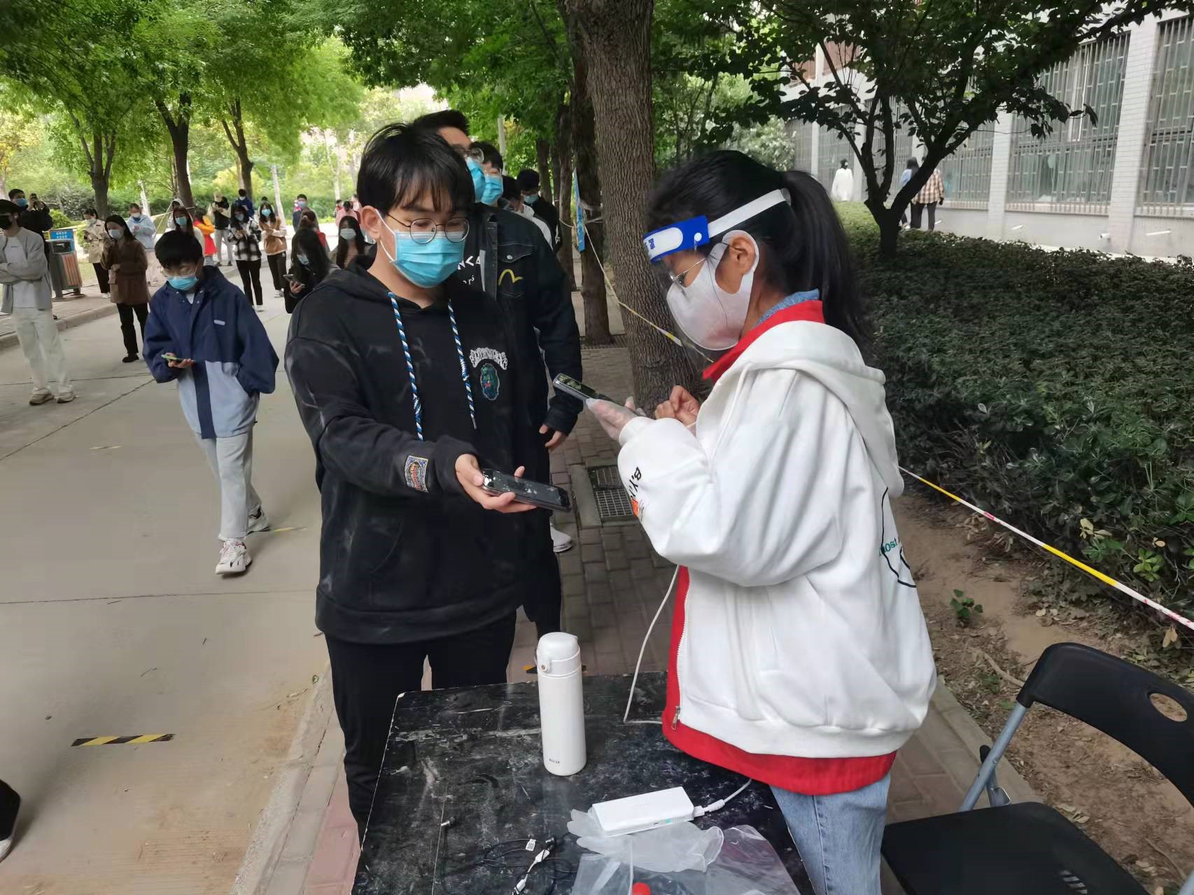 我院师生党员积极参与核酸检测志愿服务工作,在做好个人防护的同时,严格按照规程操作,与医护人员紧密配合,引导同学们有序排队,并做好信息登记、秩序维护等有关工作,保证了现场核酸检测工作有序开展,提高了全员核酸检测工作的效率。