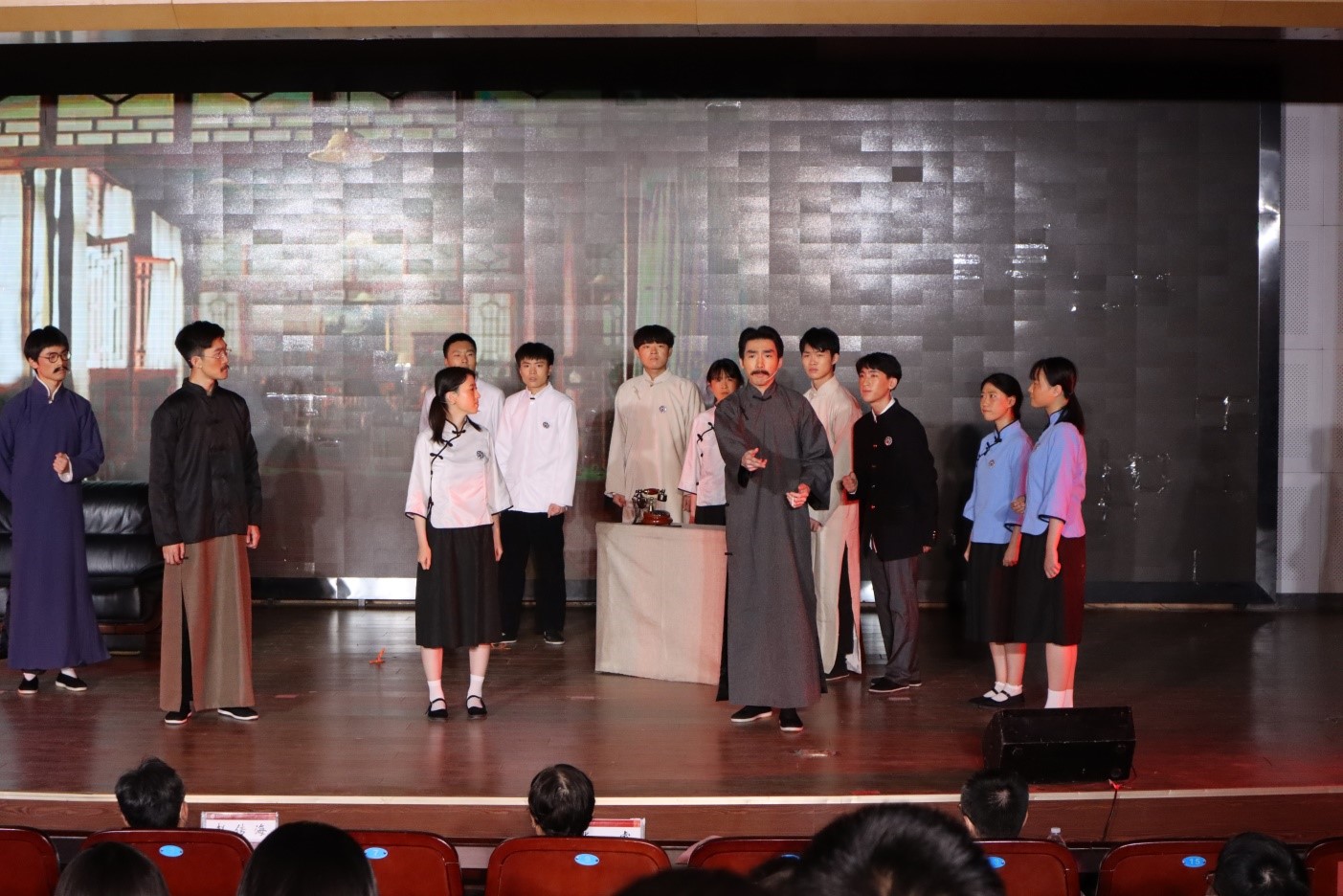 为深入学习贯彻习近平总书记在庆祝中国共产主义青年团成立一百周年大会上的重要讲话精神,提高新时代青年的责任意识和担当精神,以青春奋斗献礼二十大,5月25日,我院春雷话剧社在图书馆报告厅公演红色短剧《觉醒·青春》。