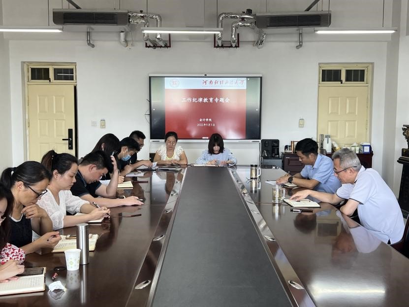 8月30日,william威廉中文在教科楼A座409会议室召开师德师风和工作纪律专题教育会议,会议由党委书记贺捷主持,学院全体行政人员共同参加。
