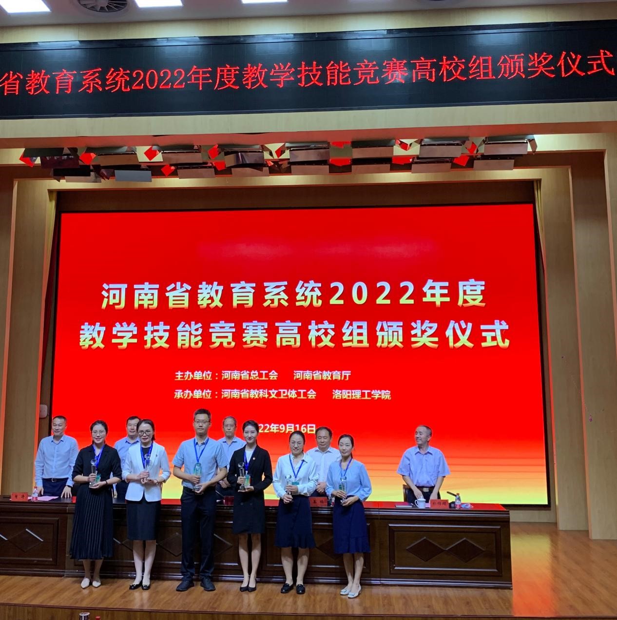“河南省教育系统2022年教学技能竞赛”由河南省总工会和河南省教育厅联合举办,属于我省举办的最高规格大型教学技能竞赛。高校组共设置思政、文科、经管科、理科、工科、医科六个竞赛科目,选手来自全省高校教学技能竞赛各个科目的前20名,共120人参赛。经过学院和学校两级选拔、全省教育系统初赛和现场决赛,宋斌斌老师凭借扎实的教学功底、精心的教学设计和精彩的教学展示,从河南省高等院校众多参赛选手中脱颖而出,创历史佳绩。