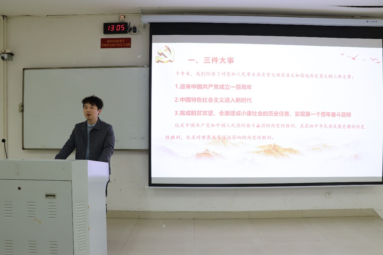 各年级辅导员用实际行动推动习近平新时代中国特色社会主义思想和党的二十大精神走进课堂,引导学生坚定发展信心,深刻领会党的二十大的重要意义。2021级辅导员杨腾辉以党的二十大报告擘画的全面建成社会主义现代化强国的宏伟蓝图为切入点,教育学生深刻领会党的二十大精神的丰富内涵和实践要求,深刻领会过去5年的工作和新时代10年的伟大变革,把党的二十大精神与自身实际相结合,锐意进取埋头苦干,以更加饱满的精神投入到新学期。2022级辅导员潘婧以及2020级辅导员马青青围绕当前新型冠状病毒感染疫情的新形势、新情况、新特点和新要求,引导学生正确看待疫情防控政策的调整和变化,提高学生防病意识和自我防护能力,当好自身健康第一负责人。并针对“疫后综合征”“开学综合征”,向同学们普及心理健康知识以及安全知识,引导学生珍爱生命,积极向上,提高自身心理素质。