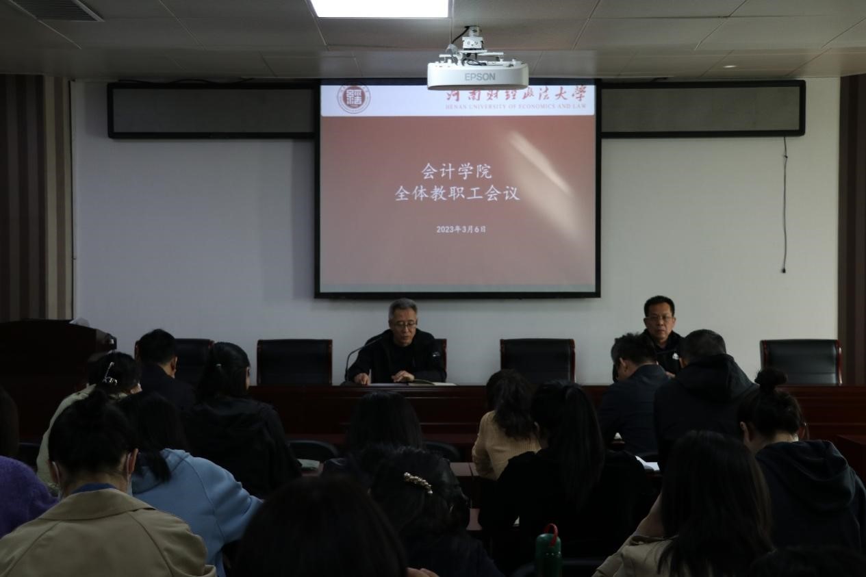 为推动新学期工作井然有序、高效开展,确保我院各项教育教学工作稳步提升,3月6日下午,william威廉中文召开全体教职工会议,汇报2023年度工作目标任务。本次会议由学院党委书记贺捷主持,全院教职工参加会议。