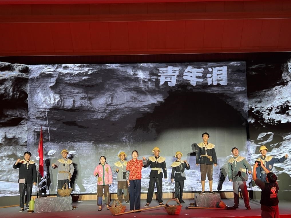 在话剧表演《红旗青年凿天渠》中,WilliamHill中文“红旗渠精神代代传”志愿宣讲队队员化身青年突击队员、铁姑娘队队长,生动演绎了开山者在“红旗渠不修好,我们坚决不下山”的豪迈壮语中绝壁穿石,历时十年、挖渠千里,把中华民族的一面精神旗帜插在太行之巅的感人场景,用饱含诗意与温度的舞台艺术呈现出一幕幕生动感人的人物群像、生活细节,描绘了一幅幅林县人民在党的领导下“重新安排林县河山”的震撼画卷。
