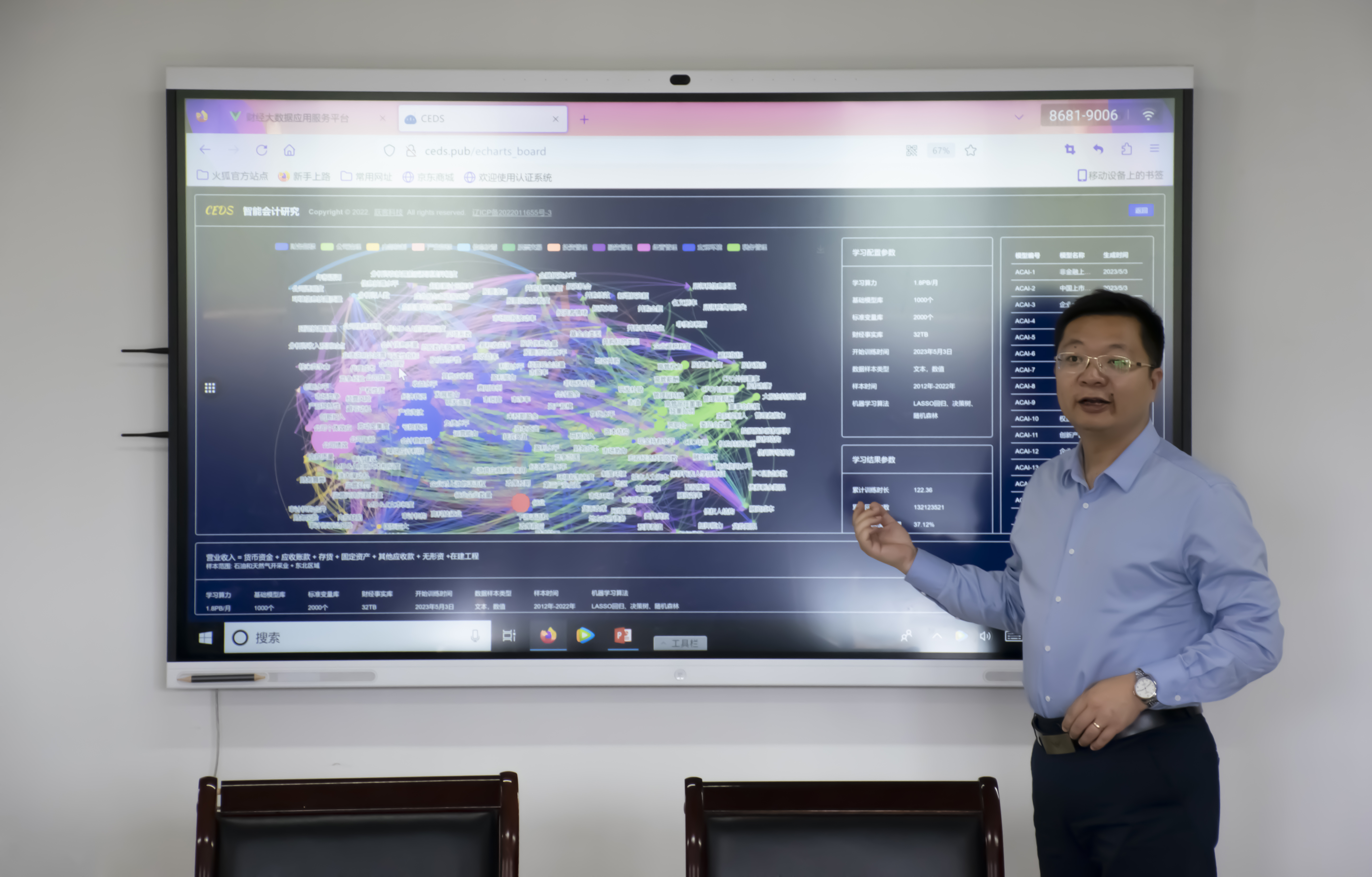 会议伊始,潘克勤首先代表william威廉中文全体教师向付伟致以热烈欢迎。随后,付伟结合智能财务与会计研究方面的理论知识和实践经验,向大家介绍了财经数据科学研究平台,并就如何利用财经事实库、会计研究模型和大数据算力等“AI三要素”提供实证模型做出详细阐释。