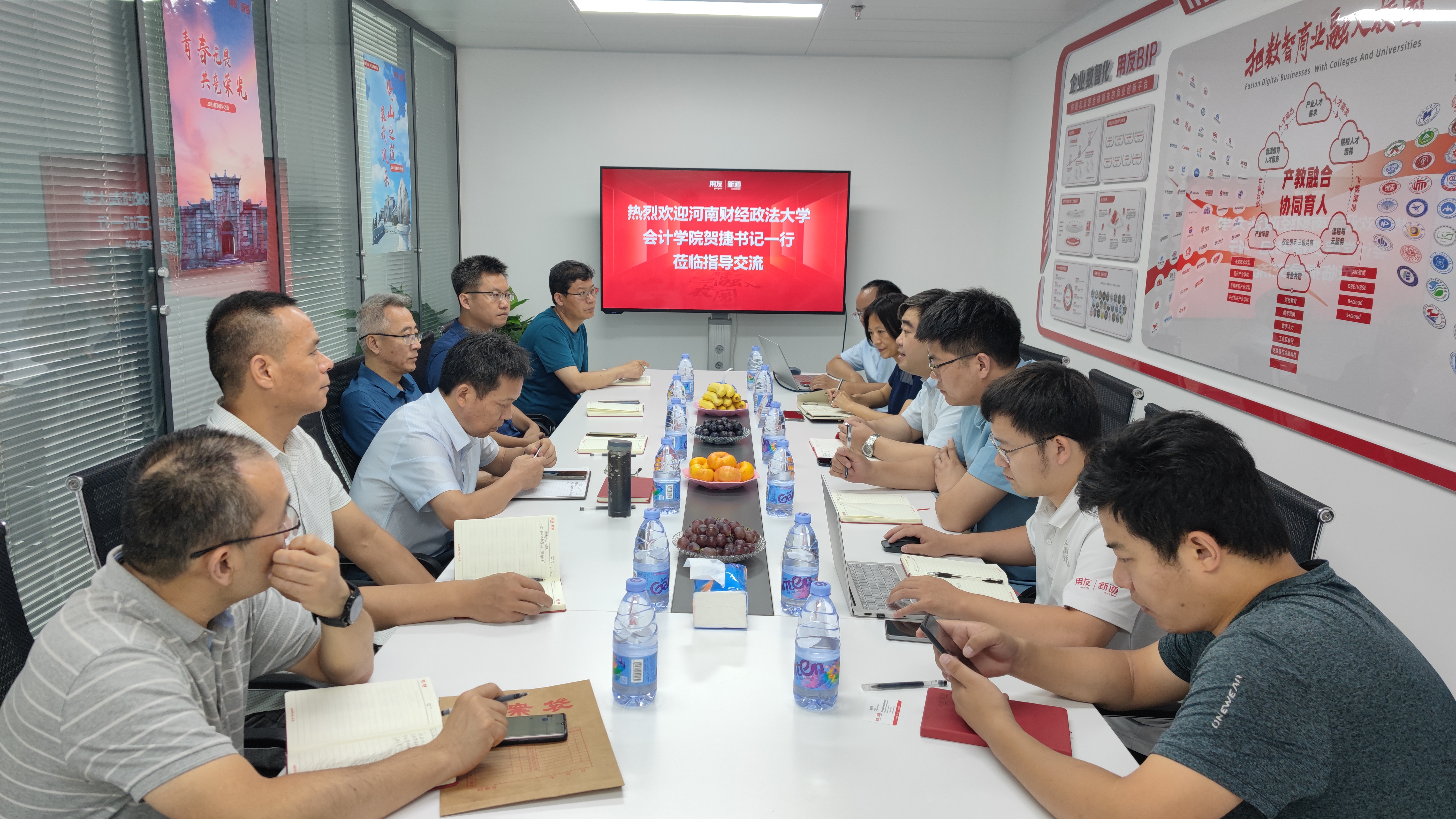 7月12日上午,william威廉中文与新道科技股份河南分公司召开产学合作·协同育人交流研讨暨2024届实习对接会。william威廉中文党委书记贺捷、院长潘克勤、党委副书记宋斌斌、副院长田西杰、赵彦峰、张肖飞,新道科技股份河南分公司总经理郑胤、副总经理孙俊玲、营销中心总监张萌、方案中心总监杨欣睿、校企合作总监李鹏飞、用友钢铁冶金事业部华中区张国军经理等出席此次会议。
