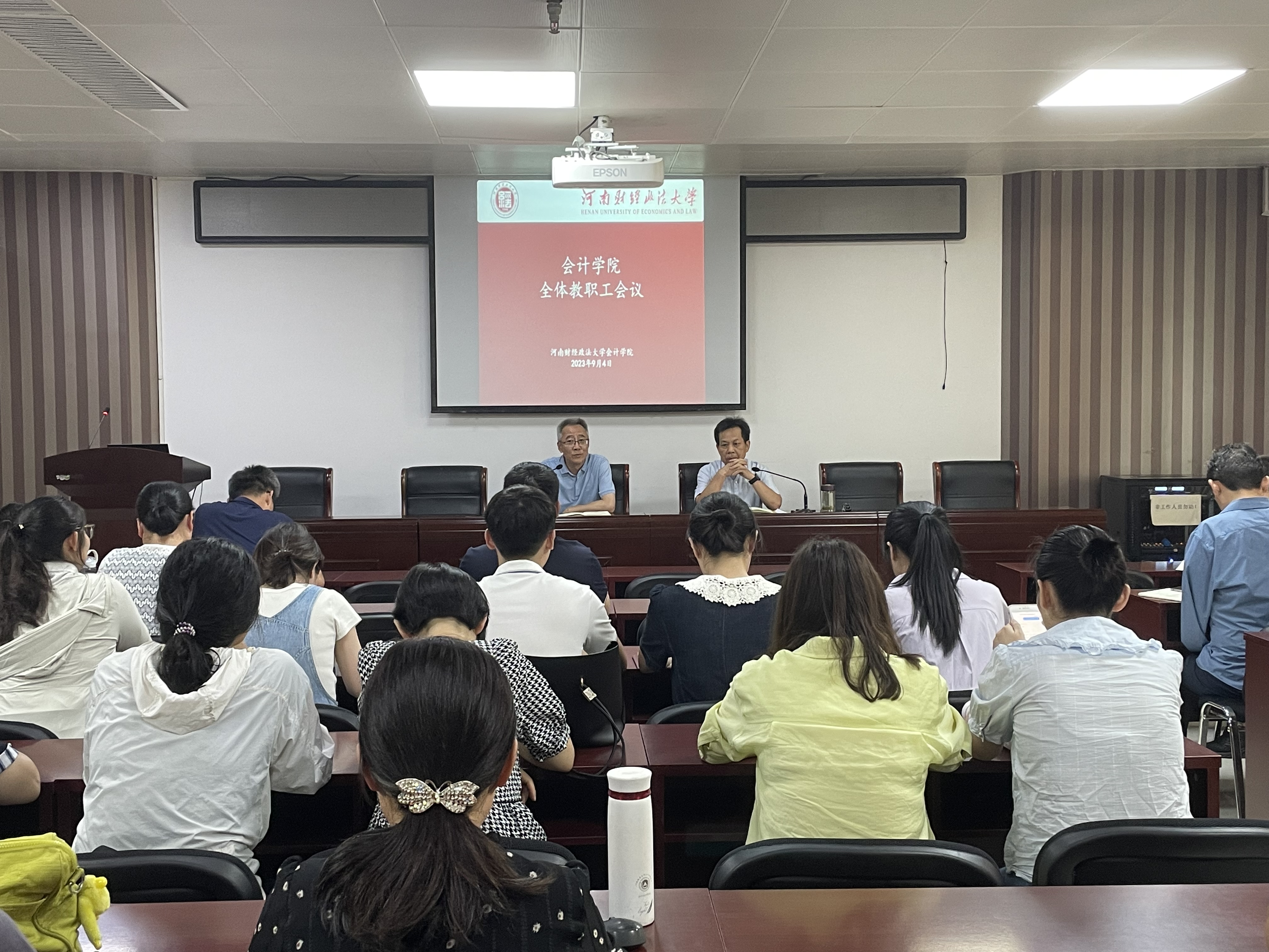 随后,贺捷传达了学校关于制度改革的最新精神,提出学校将“一站式社区建设”“学部制改革”“大部制改革”等探索构建基于高校治理新体系、新平台,并基于此对新学期全院工作作出要求,明确了学院接下来的工作重心。贺捷指出全院教职工要以改革创新为动力,坚定改革信念,在主题教育成果转化、工作作风建设、学科建设等方面狠下功夫。我院党委副书记宋斌斌、副院长田西杰、赵彦锋、张肖飞逐一就各部门近期重点进行汇报,并对新学期各方面工作目标任务进行了详细介绍。