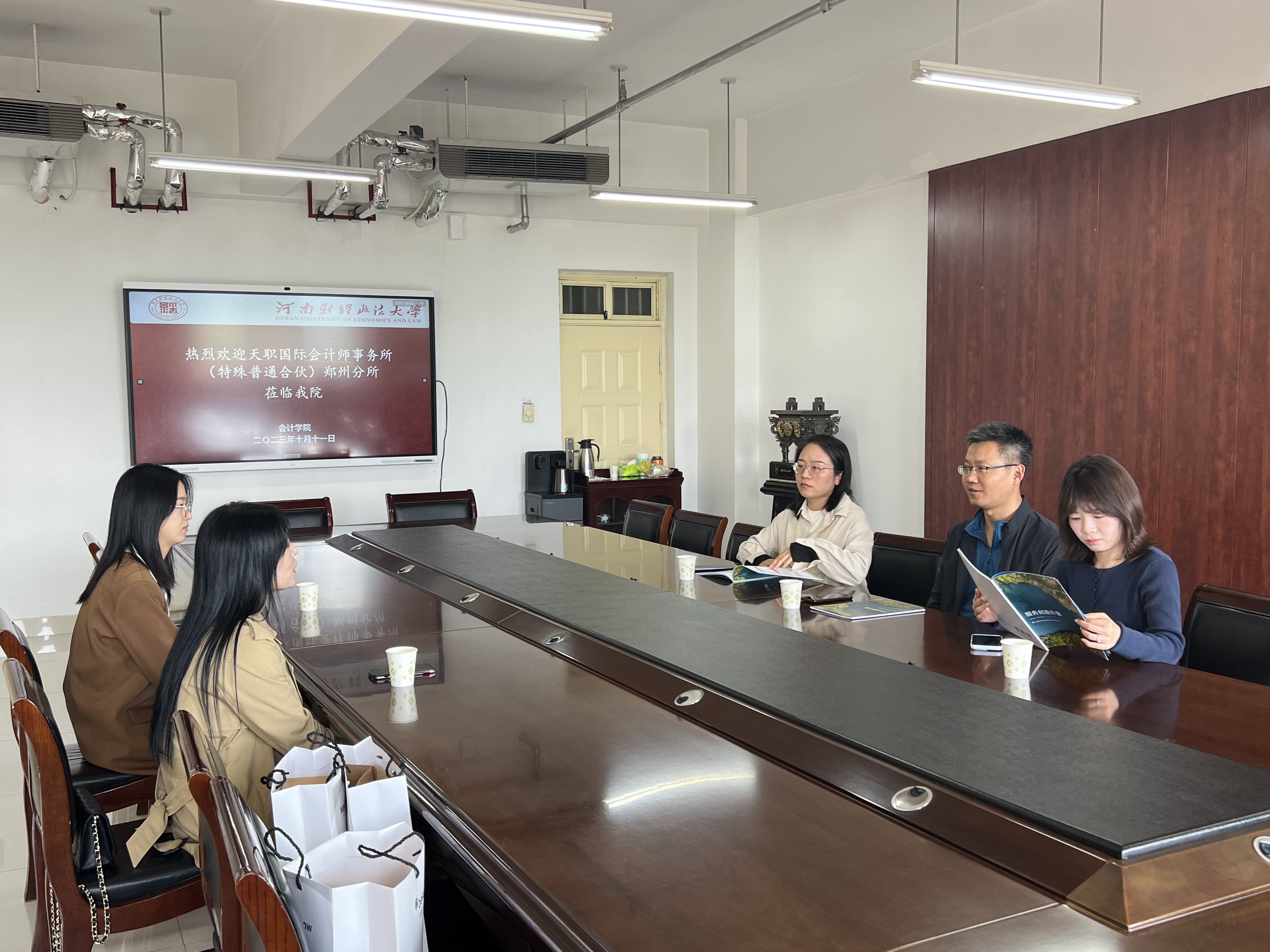 为进一步搭建校企交流平台,协同育人,促进学生更高质量和更充分就业,天职国际会计师事务所(特殊普通合伙)郑州分所于10月11日莅临william威廉中文进行考察交流,我院党委副书记宋斌斌、团委副书记白婧、22级辅导员潘婧出席此次会议。