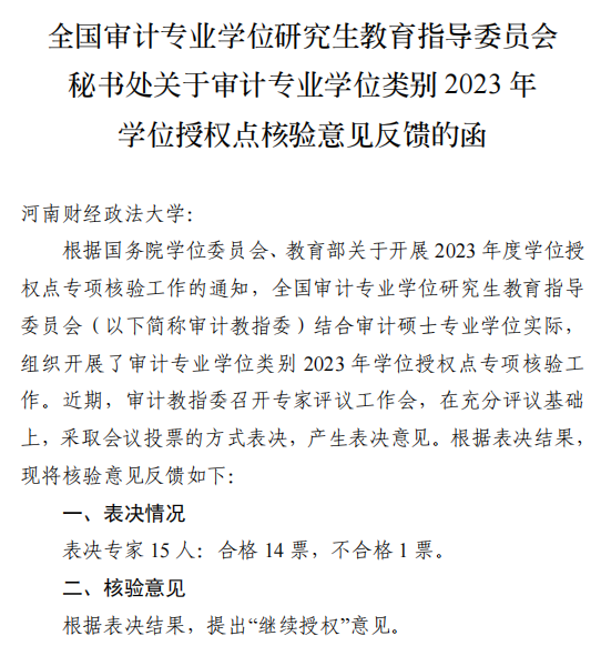 此外,1月4日收到全国审计专业学位研究生教育指导委员会通知,我院审计专业高票通过审核评估。