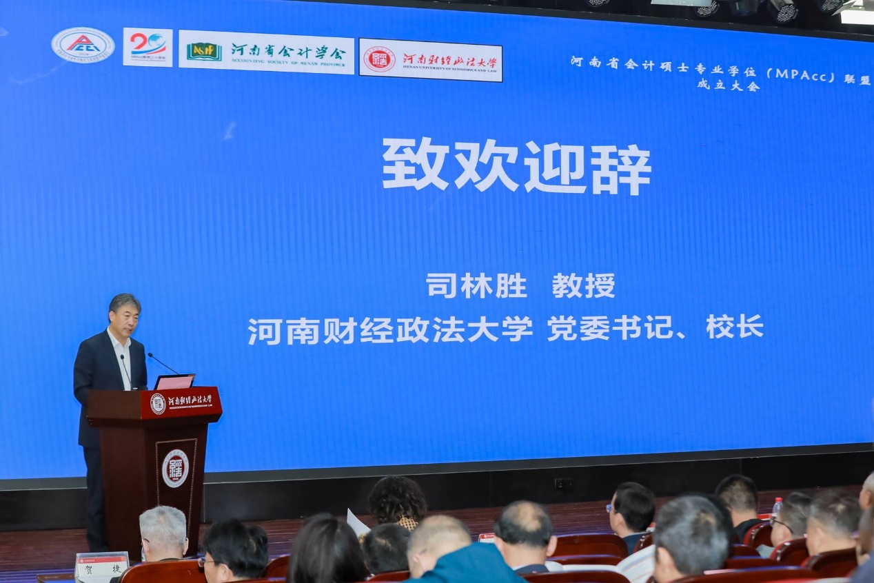 司林胜在大会致辞中强调,新文科建设背景下,高校需响应会计行业数字化与智能化转型,通过资源共享和协同育人,构建适应经济发展需求的高质量会计硕士培养体系。他指出,联盟的成立是河南省会计教育发展的重要里程碑,希望联盟在河南会计教育的发展中发挥更重要作用,通过资源共享、优势互补、协同育人,打造符合我省经济发展需求的高质量会计硕士人才培养体系,为河南经济社会发展提供更有力的人才和智力支撑。司林胜还介绍了学校着力构建“以学习者为中心”的教育生态、致力于培养财经政法融通的复合型人才,以及坚持高质量内涵式发展、深化学科治理体系综合改革的目标、任务举措和初步成效。