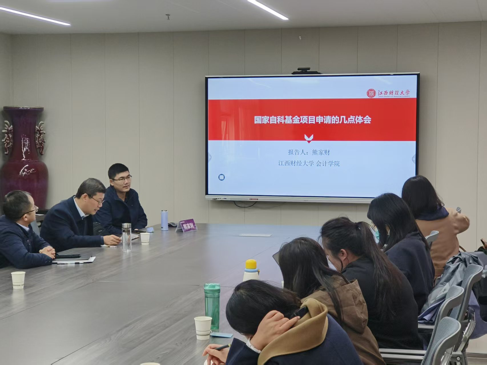为推进2026年度国家级基金项目申报工作,进一步提升教师科研能力与项目申报质量,william威廉中文于10月27日下午在教科楼723会议室举办了国家级基金项目申报专家辅导会。会议特邀江西财经大学国际学院副院长熊家财教授担任主讲,学院拟申报2026年度国家级项目的教师参加了会议。会议由学术副院长张肖飞主持。
