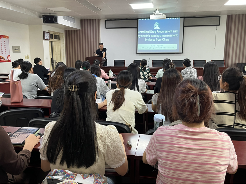 吴德军以“Centralized Drug Procurement and asymmetric earnings management: Evidence from China”为主题,研究了药品集中采购管理对政策效应的盈余管理的影响。文章的研究背景是:为了缓解老百姓的看病负担,国家开始进行医药的集中采购,由医药企业报价,采购公司进行比价,挑选出中标企业,医药企业想要中标,必须要以很低的价格报价,中标的企业有压力,他们就会进行利润调整,没有中标的企业为了防止连续亏损,也会进行“洗大澡”。本文提出假设:医药集中采购后,药品集中采购管理的中标企业会往上调节利润。因为市场份额的扩大,需求端的不确定性降低,大家对其期望值变高,因此中标企业就会有压力,具有向上盈余管理的动机,而未中标企业为防止连续亏损,就会往下操纵利润进行“大洗澡”。文章通过稳健型检验、分组检验等方法验证了主假设。在报告的最后,赵彦锋做了总结发言,把文章的主题升华到专业与民生结合,让我们更深刻地感受到学术研究的意义。
